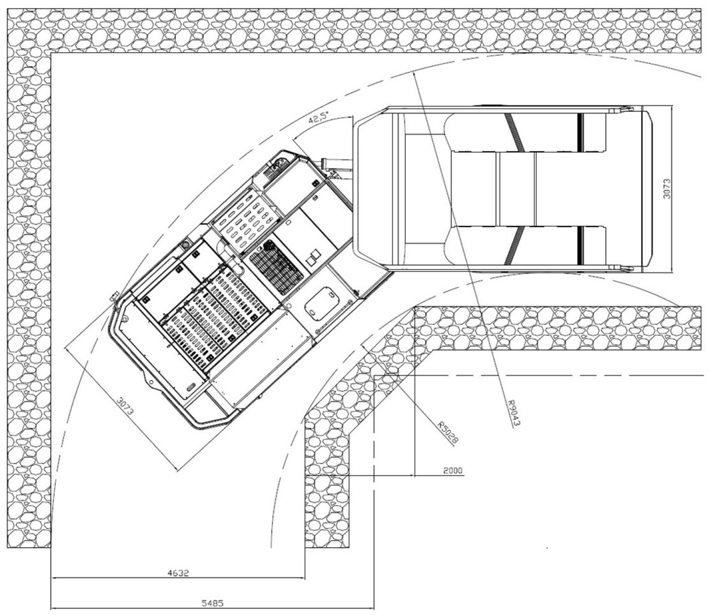 Ağır hizmet tipi şasi, zorlu yer altı ortamlarıyla başa çıkmak üzere tasarlanmıştır. Güvenilirlik ve dayanıklılık sağlamak için en iyi Q460C çelik sacdan, robot-otomatik kaynak ve entegre işleme teknolojisinden üretilmiştir. Merkezi mafsal, arıza süresini azaltmak, işletme maliyetlerini düşürmek ve ön ve arka şasilerin zorlu çalışma koşullarında zeminle iyi bir temas kuracak şekilde serbestçe dönebilmesini sağlamak için bakım gerektirmeyen, tamamen sızdırmaz bir döner mafsal kullanır.